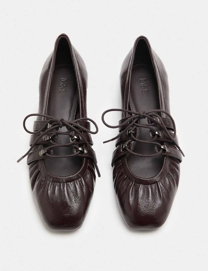 The M&S Dark Brown Lace-Up Ballet Pumps is ideal for casual, everyday.
