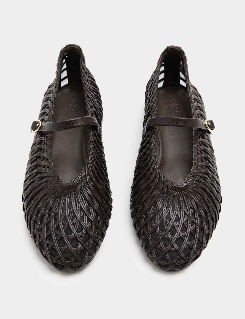The M&S Dark Brown Woven Flat Mary Jane Ballet Pumps is available in sizes 3, 4, 5, 6, 7, 8.