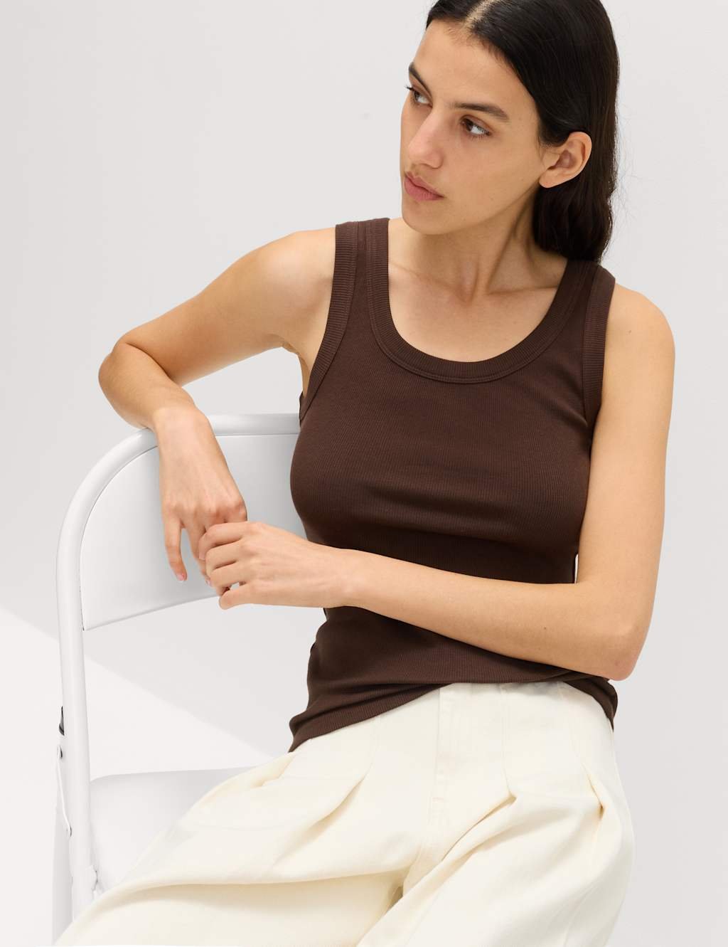 The M&S Ribbed Slim Fit Vest Top in Dark Chocolate is made from cotton.