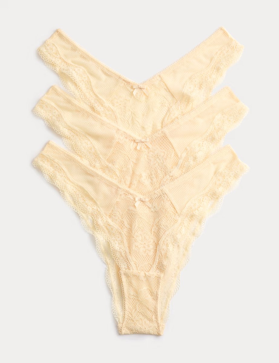 Floral lace lends a pretty look to this three-pack of Miami knickers. High cut on the leg with a V-shaped waistband for a flattering silhouette. Added stretch provides comfort. Complete with a timeless bow and scalloped trims.
