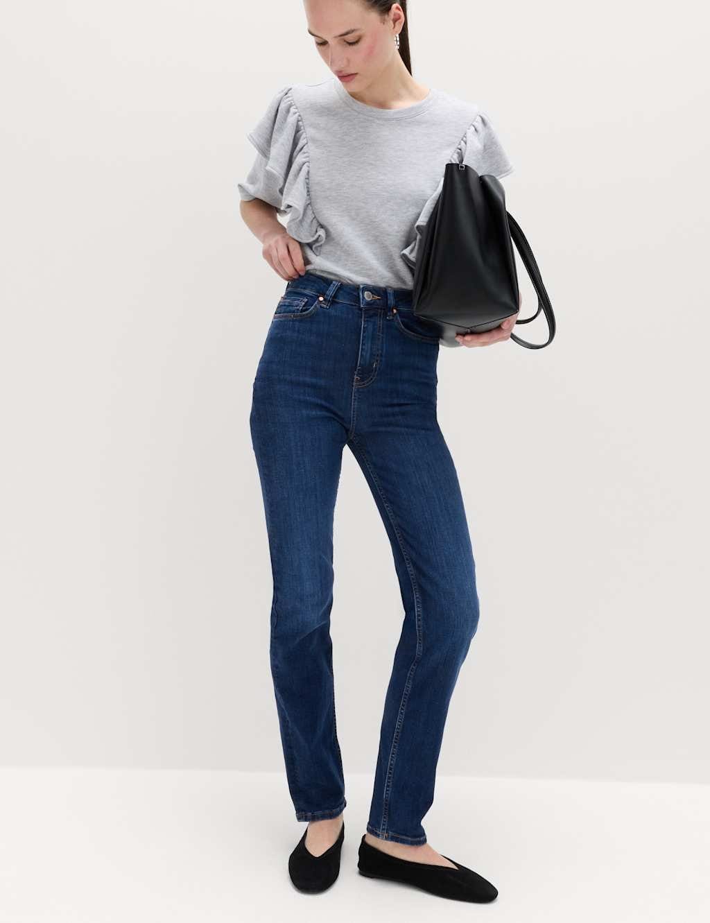 See all outfit ideasStylish high waisted jeans from M&S in dark indigo denim. Made from supersoft fabric for ultimate comfort, these jeans feature a modern straight-leg cut and added stretch for all-day wear. Perfect for casual outings or smart-casual looks.