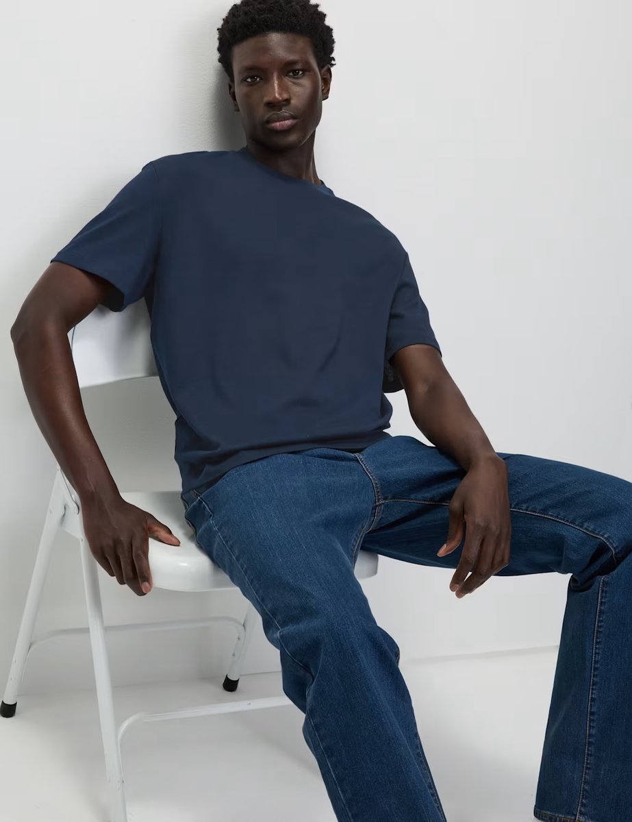 The M&S Dark Navy Ultimate Performance T-Shirt with Moisture-Wicking is ideal for casual, activewear.