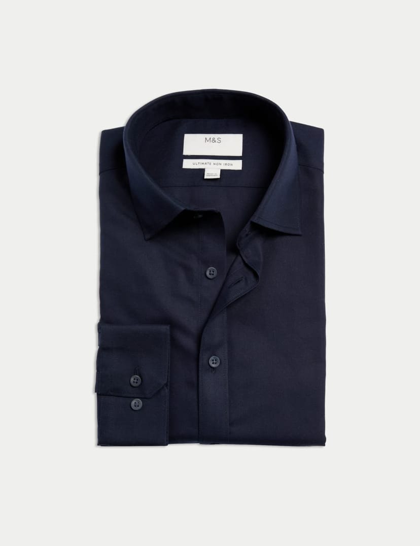 The M&S Dark Navy Non Iron Cotton Shirt is made from cotton.