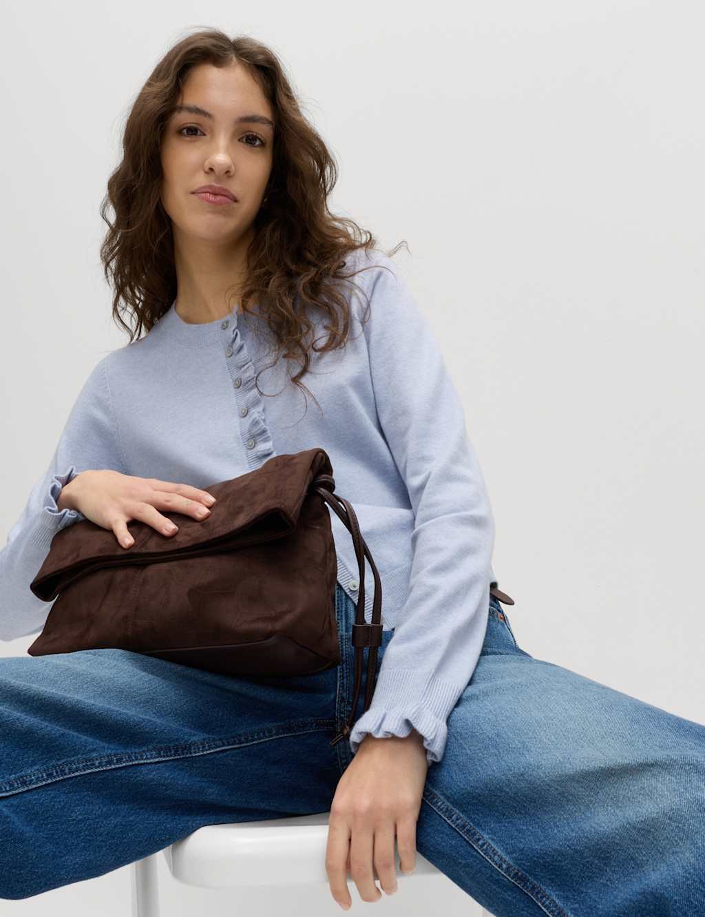 The M&S Ruffle Slim Fit Cardigan in Faded Blue is made from air-spun yarn, touch of stretch.