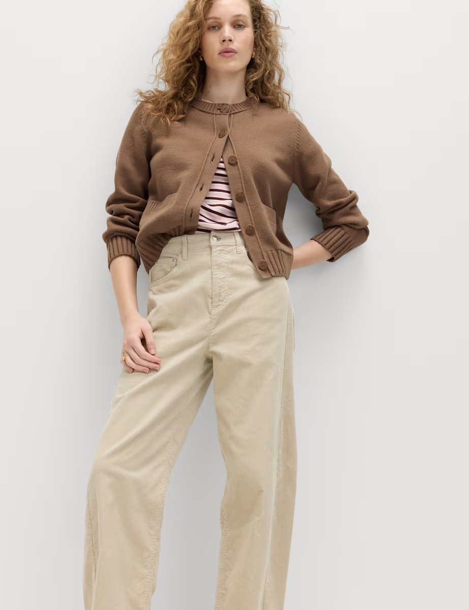 The M&S Cotton Rich Crew Neck Button Front Cardigan Golden Brown is ideal for casual, work, business.