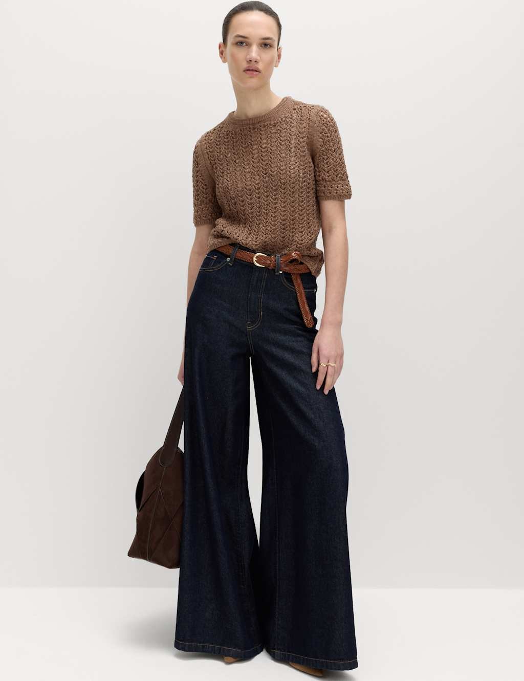 The M&S Cotton Rich Textured Knitted Top in Golden Brown is ideal for casual, weekend.