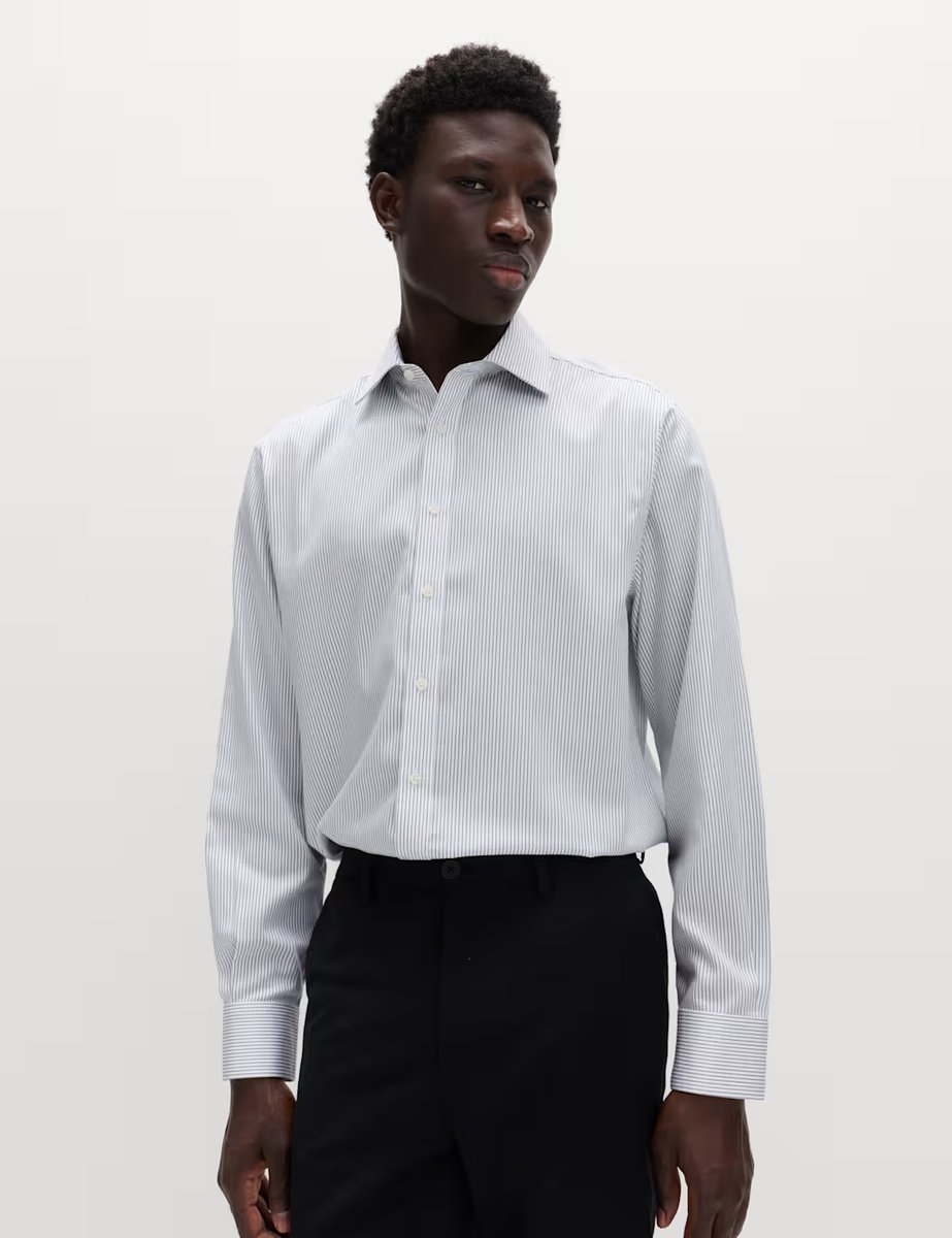 The M&S Regular Fit Non Iron Cotton Striped Shirt in Green Mix is ideal for work, business, casual.