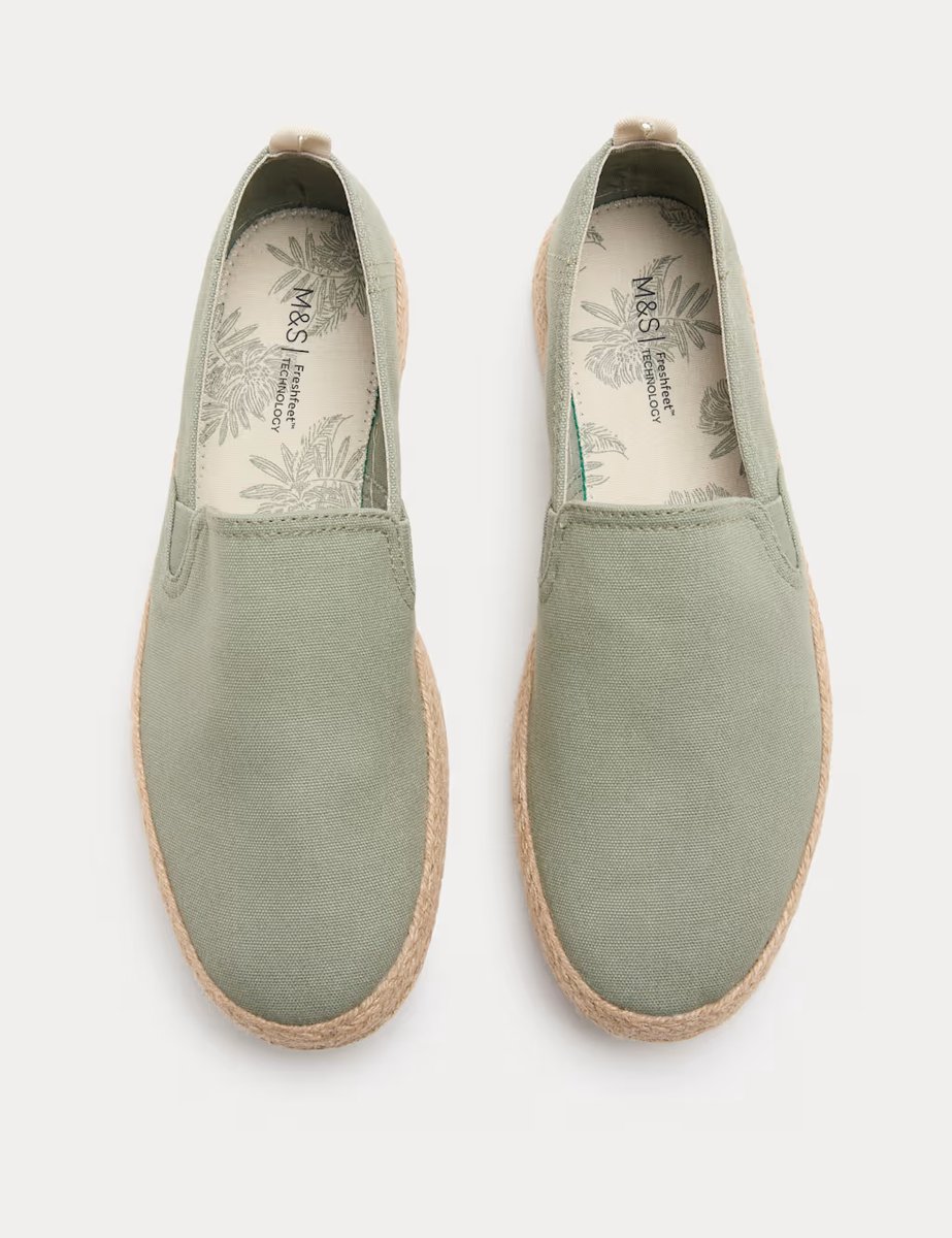 The M&S Green Canvas Espadrilles is available in sizes 10, 11, 12, 6, 7, 8, 9.