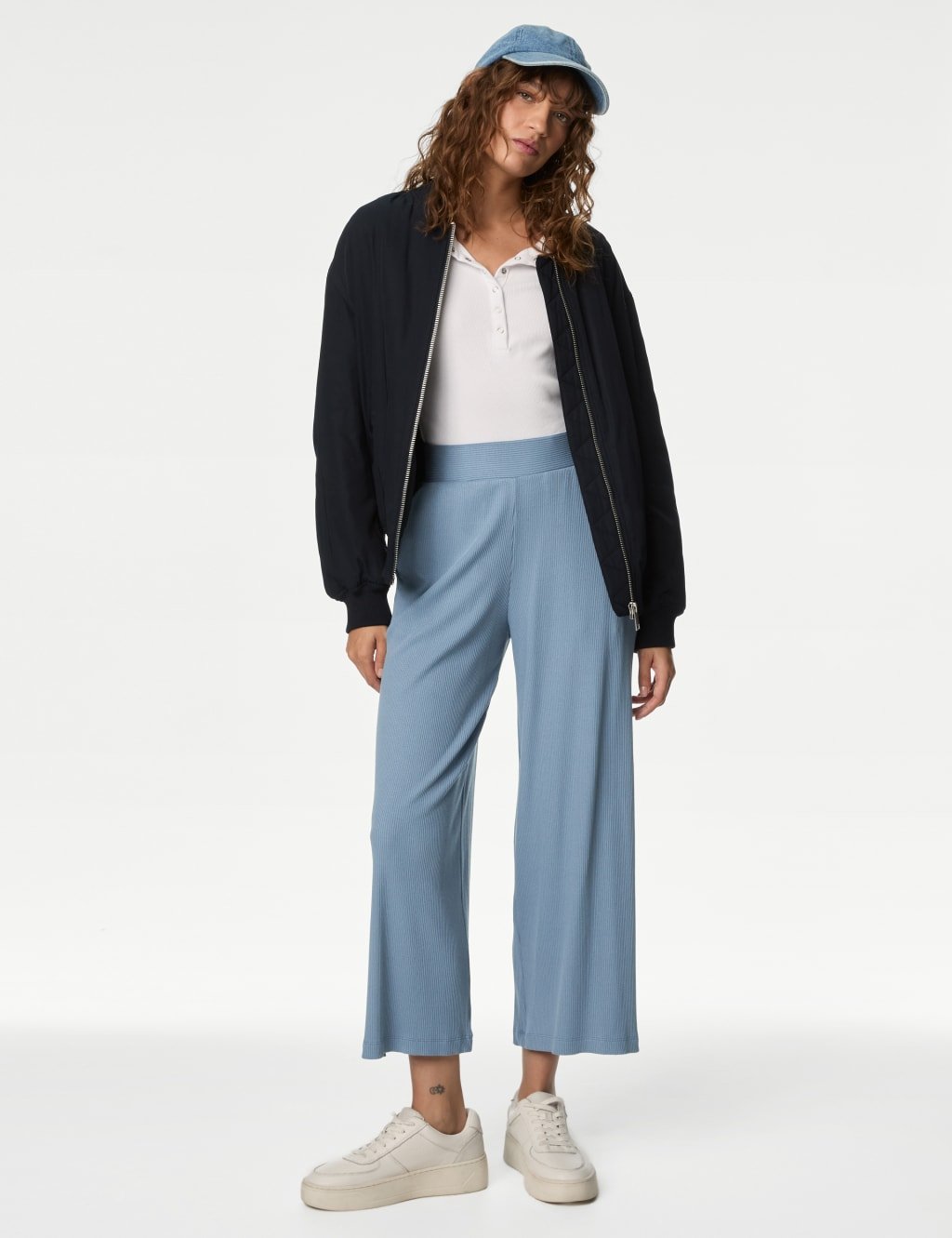 The M&S Wide Leg Culottes in Grey Blue is ideal for work, weekend.
