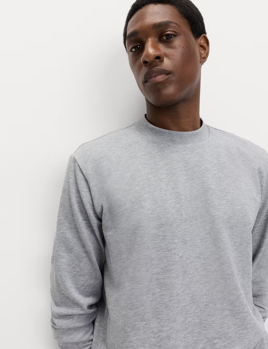 The M&S Cotton Rich Crew Neck Sweatshirt in Grey Marl is ideal for casual.