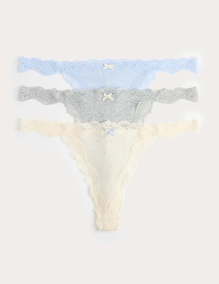 The M&S 3 Pack Cotton Blend Rib Lace Thongs Grey Mix is ideal for casual, everyday.