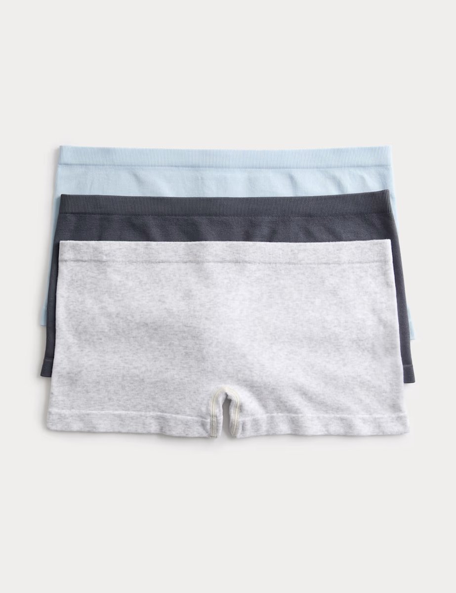These comfortable, ribbed texture boxer shorts in grey mix offer a regular fit and a low-rise waistband. Seam-free and made with stretchy material, perfect for all-day comfort. This pack includes three pairs in different colors.