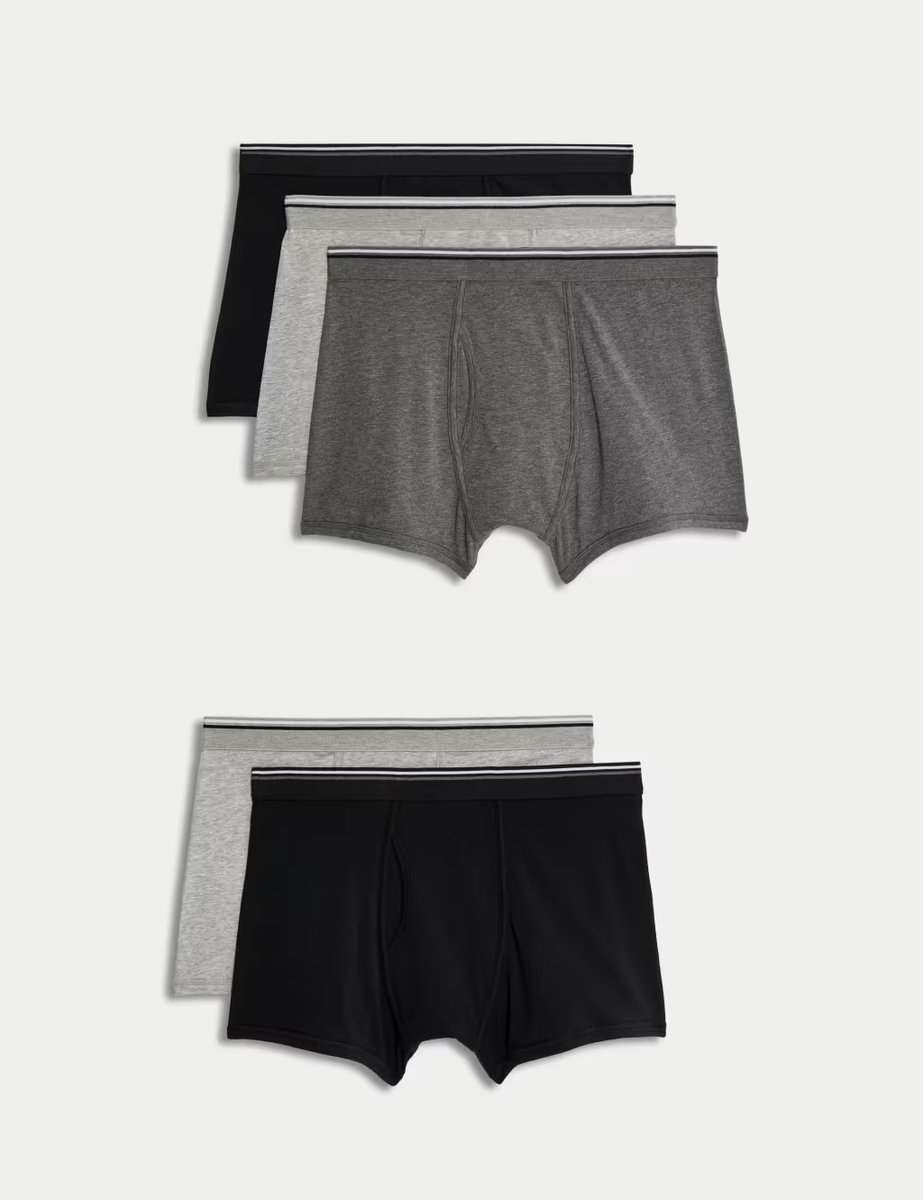 The M&S Regular Fit Cool & Fresh Trunks in Grey Mix is available in sizes L, M, S, XL, XXL, XXXL, XXXXL.