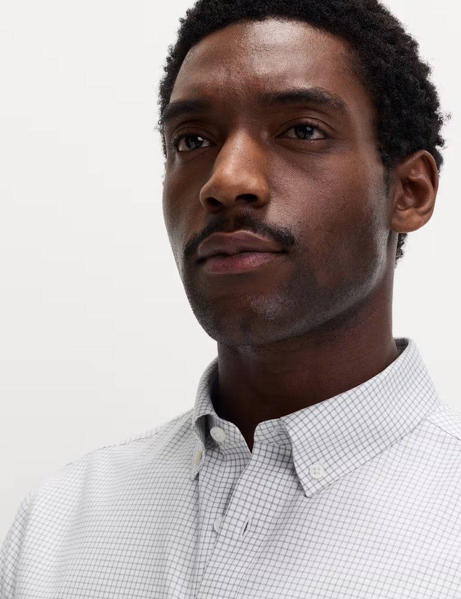 The M&S Grey Mix Check Shirt Regular Fit Non Iron is ideal for work, business, smart-casual.
