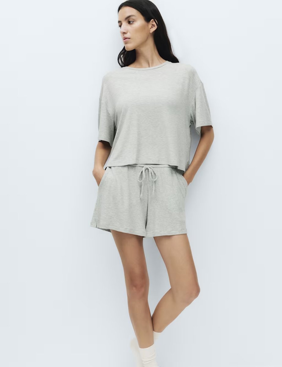 The M&S Grey Modal Ribbed Pyjama Shorts is ideal for casual, lounge.