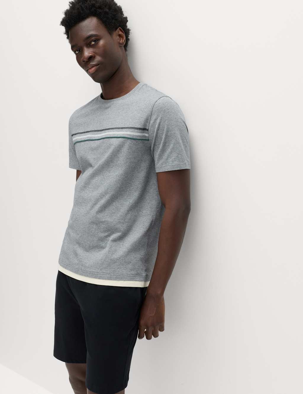 Crafted from pure cotton, this loungewear top is your ticket to bedtime comfort. It's cut to a comfy regular fit with a short-sleeved design and a crew neck. A striped graphic on the chest gives it a bold, contemporary look.