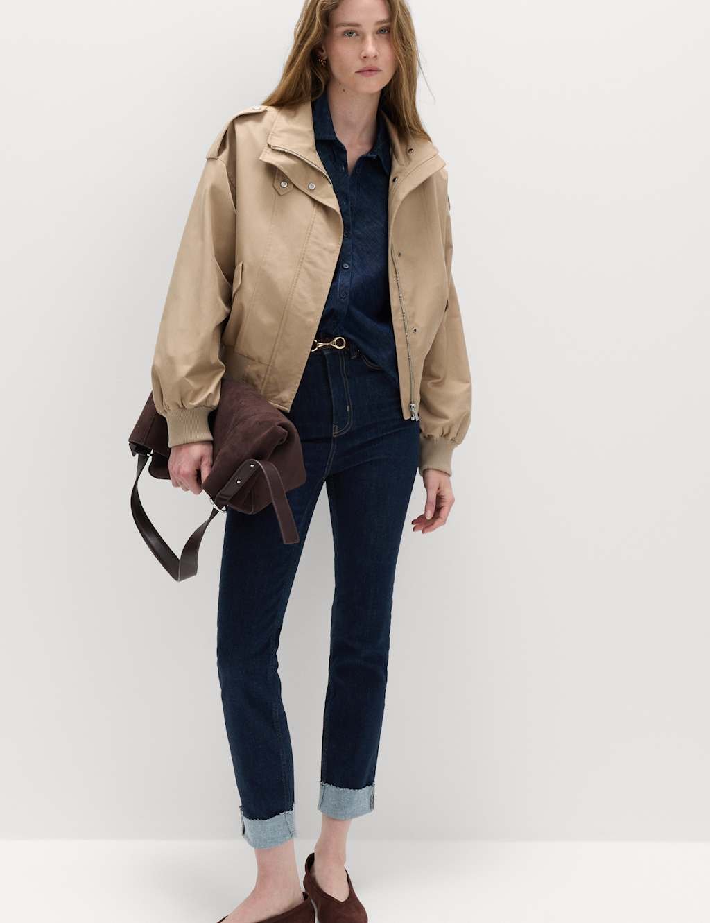 Designed in indigo, these high-waisted jeans feature a cigarette fit and ankle-grazer length for a modern touch. Made from supersoft denim, they offer a luxurious feel and added stretch for all-day comfort.