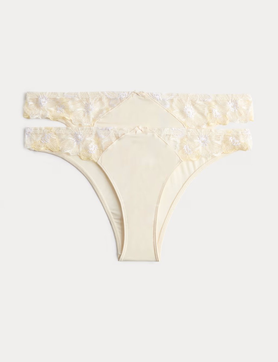 Elevate your basics with this two-pack of Brazilian knickers in ivory mix. Made in a regular fit with comfy added stretch, these knickers feature floral lace on the low rise waist and a keyhole detail at the back, adding a touch of luxurious detail.