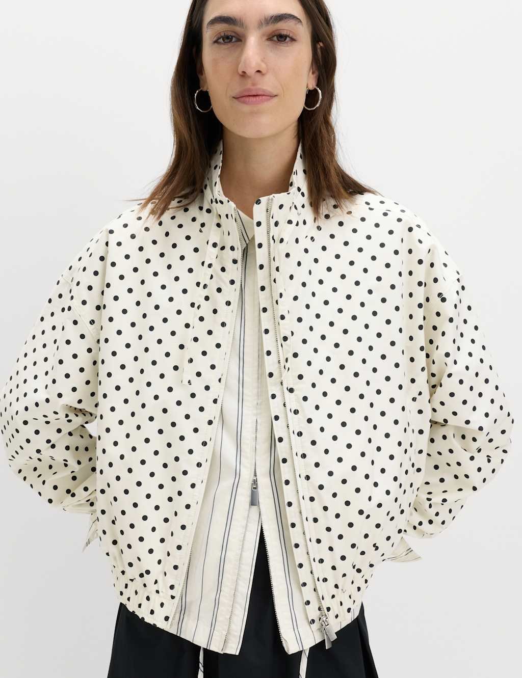 The M&S Funnel Neck Bomber Jacket in Ivory Mix is ideal for casual, smart-casual, work.