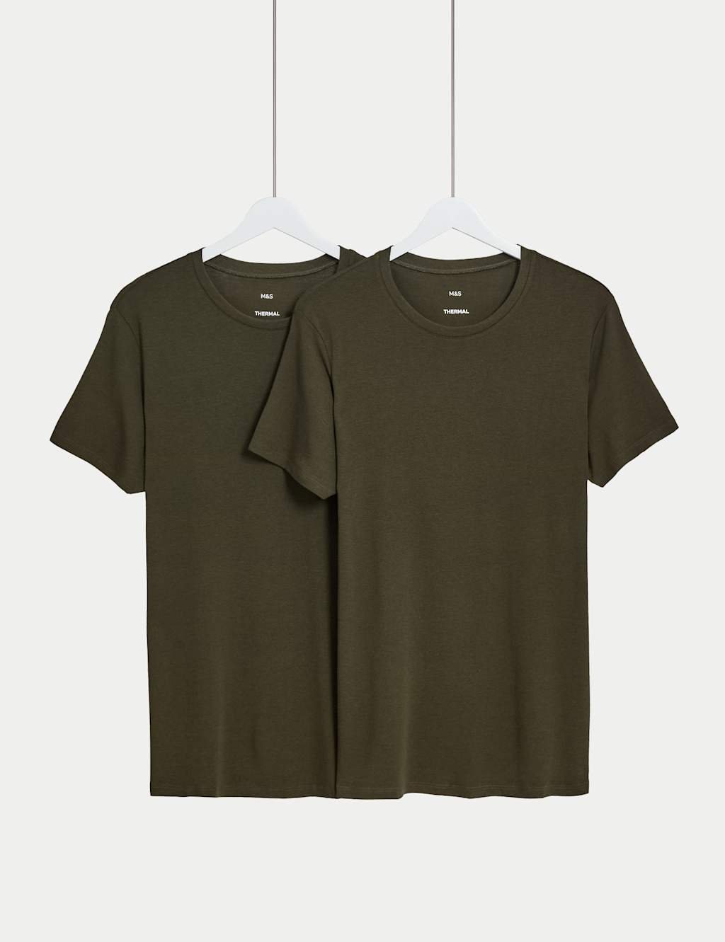 The M&S Thermal Short Sleeve Tops in Khaki is made from cotton, Lycra®.