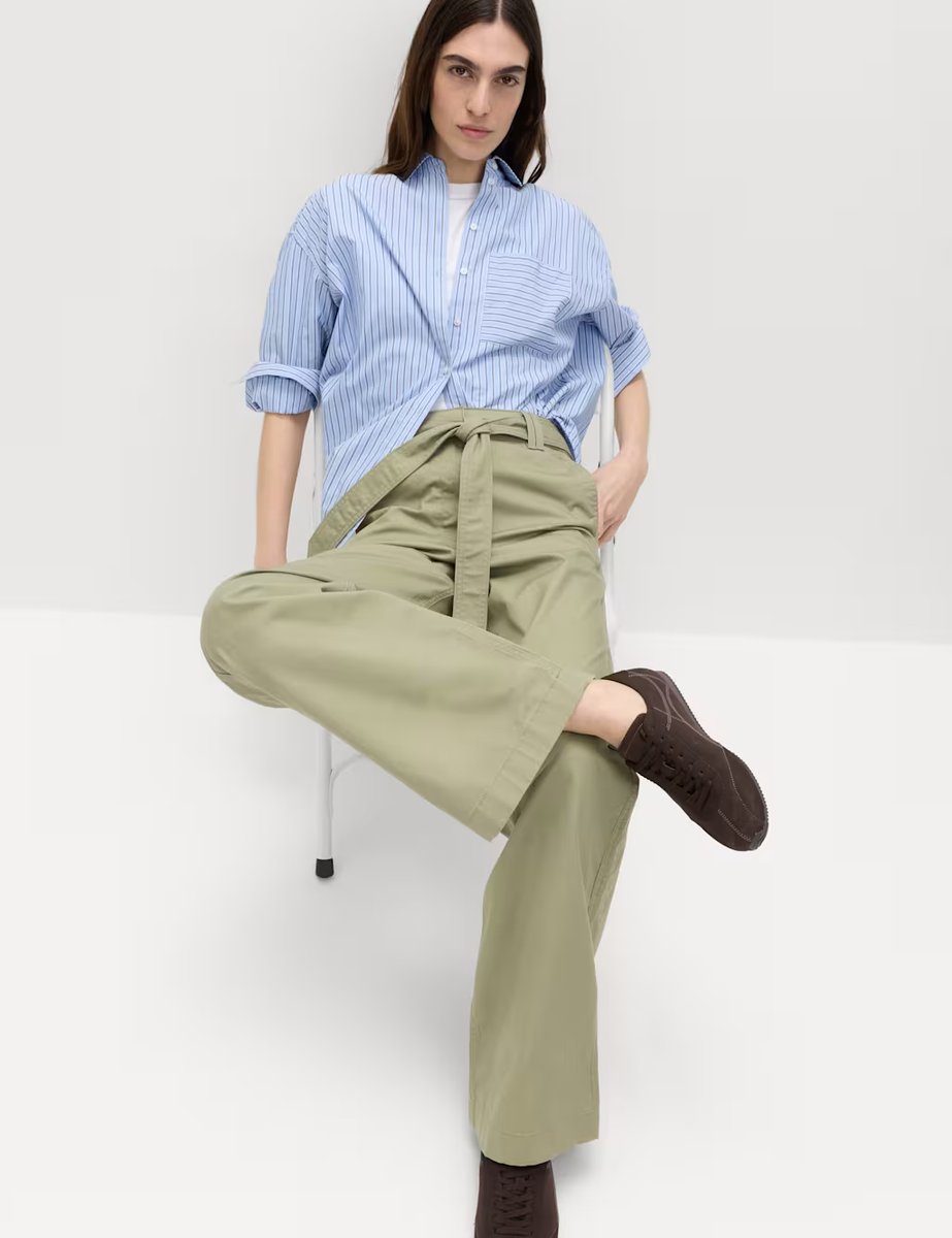 The M&S Khaki Pure Cotton Belted Straight Leg Trousers is ideal for work, casual.