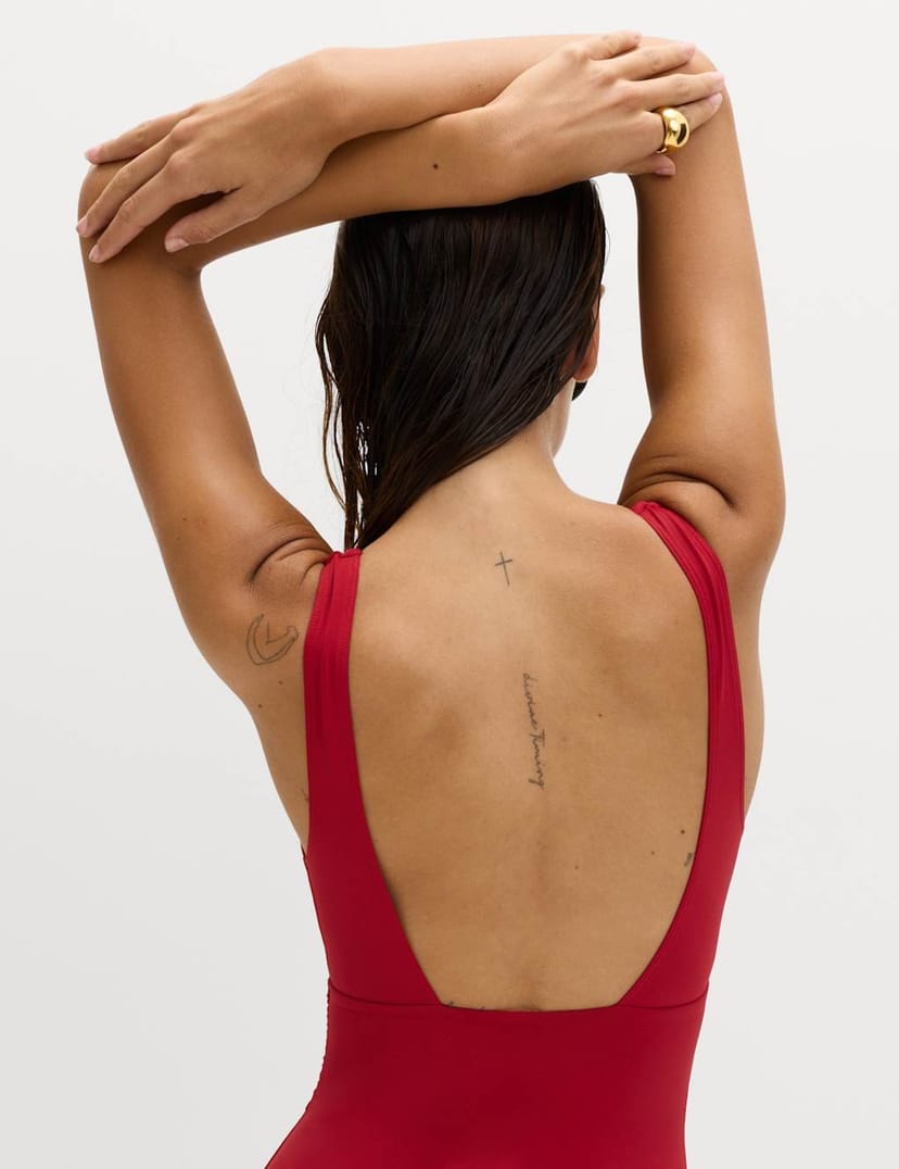 The M&S Lacquer Red Tummy Control Swimsuit is ideal for poolside, beach.
