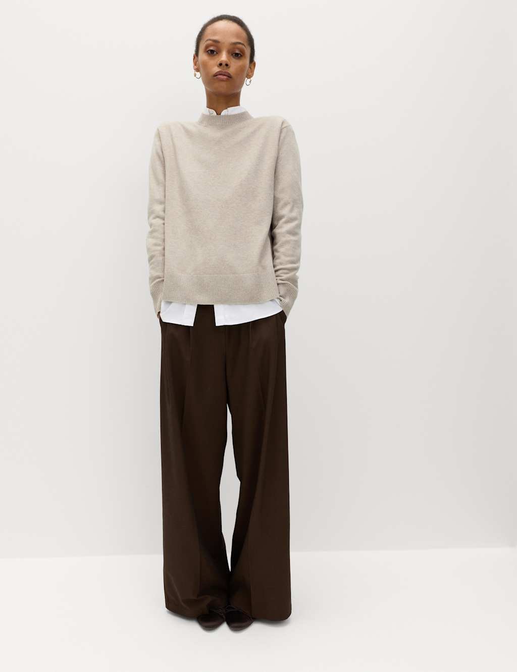 The M&S Air-Yarn Crew Neck Jumper in Light Beige is ideal for work, casual.