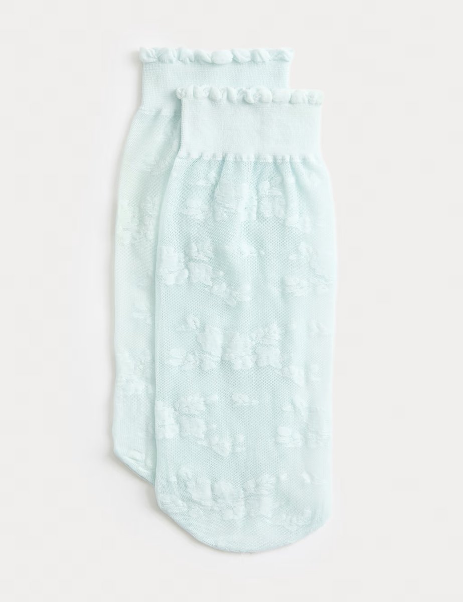 The M&S Floral Lace Ankle High Socks in Light Blue is ideal for work, casual, smart-casual.