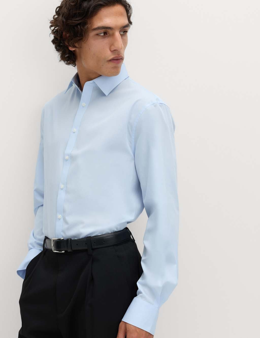 The M&S Regular Fit Light Blue Shirt with Classic Collar is ideal for work, business, casual.
