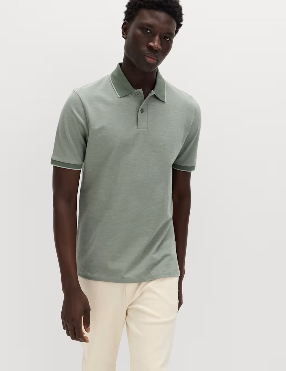 The M&S Stylish Tipped Polo Shirts Light Green Mix is ideal for smart-casual.