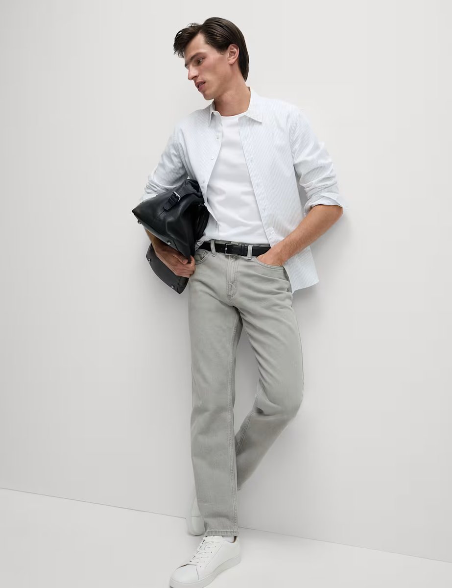 The M&S Straight Fit Pure Cotton Jeans Light Grey is ideal for casual, work.