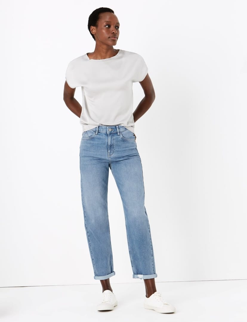 The M&S Light Indigo Boyfriend Jeans with Stretch is ideal for casual, everyday, summer.