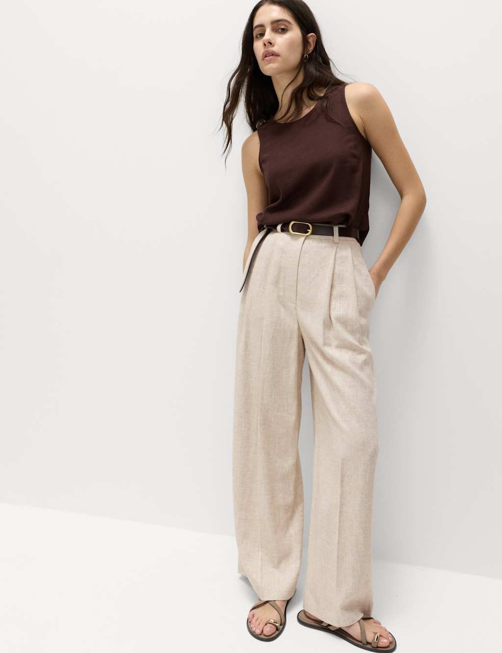 The M&S Wide Leg Trousers with Pleats in Multi/Neutral is made from linen, blend.