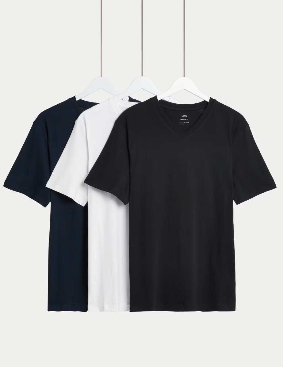 The M&S Pure Cotton V-Neck T-Shirts Navy Mix is ideal for casual.
