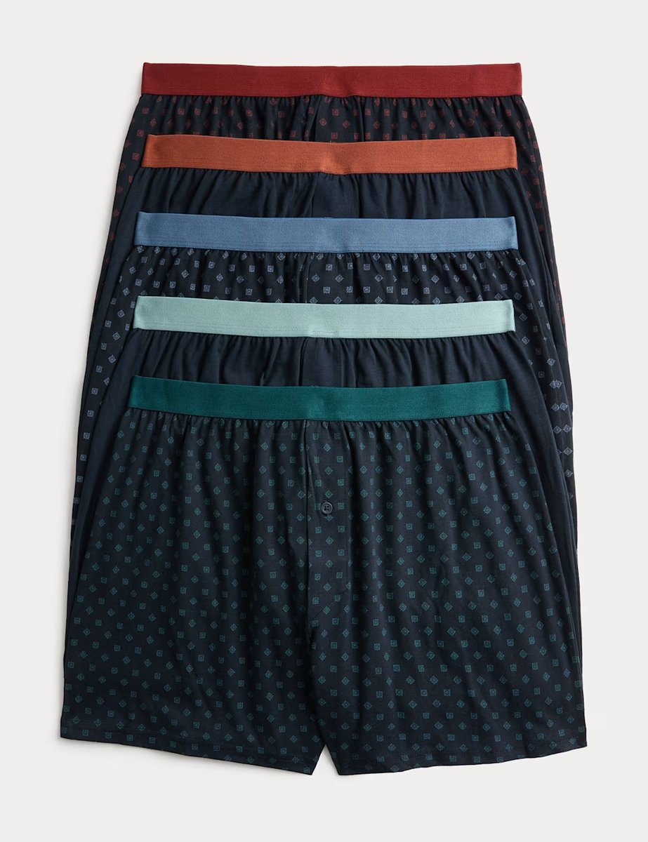 The M&S Navy Mix Pure Cotton Boxers is available in sizes 2XL, L, M, S, XL.