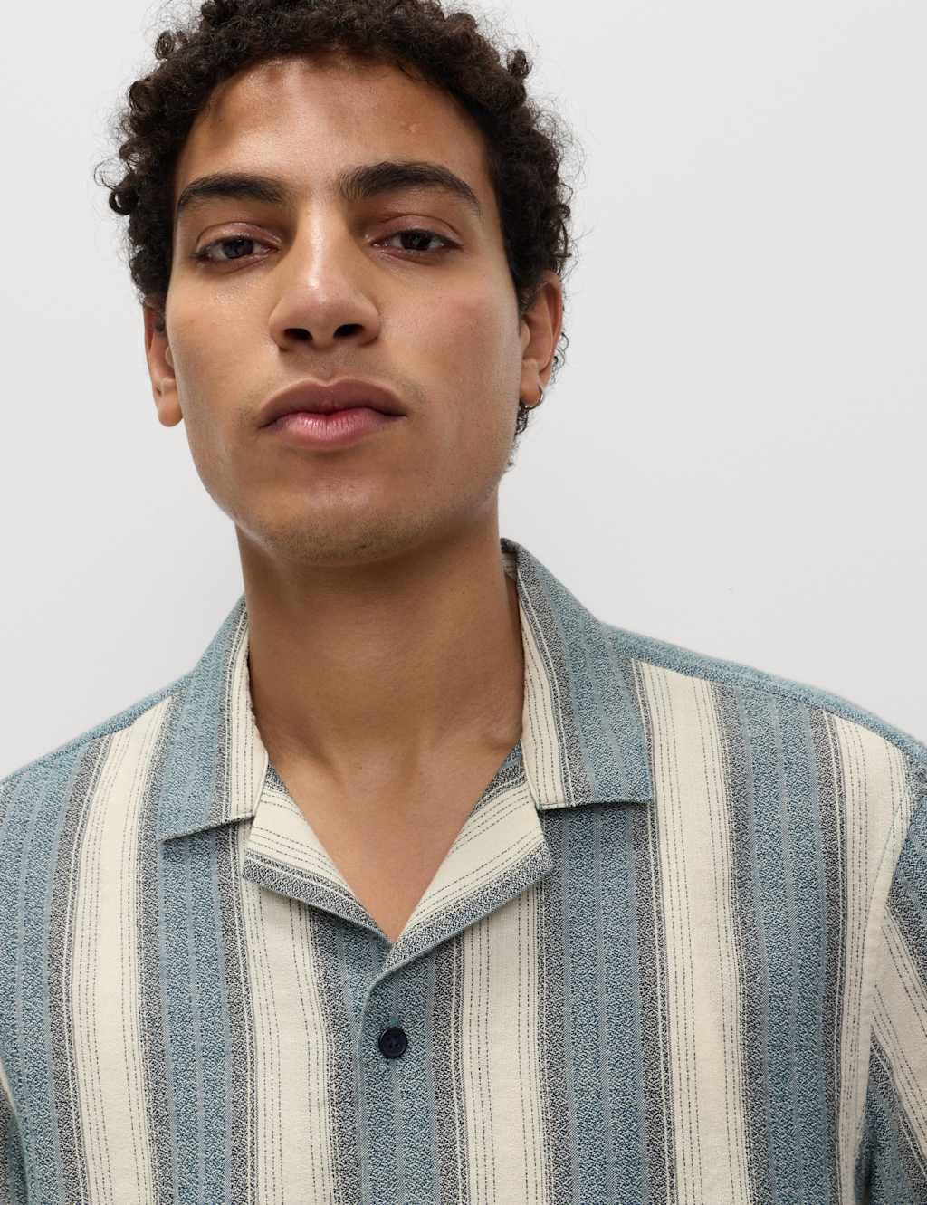 Textured stripes bring visual dimension to this lightweight shirt, ideal for elevated summer fashion style. Cut to a regular fit for easy comfort, the short sleeves create a relaxed silhouette. The Cuban collar adds a casual touch, while button fastenings ensure a clean finish throughout.