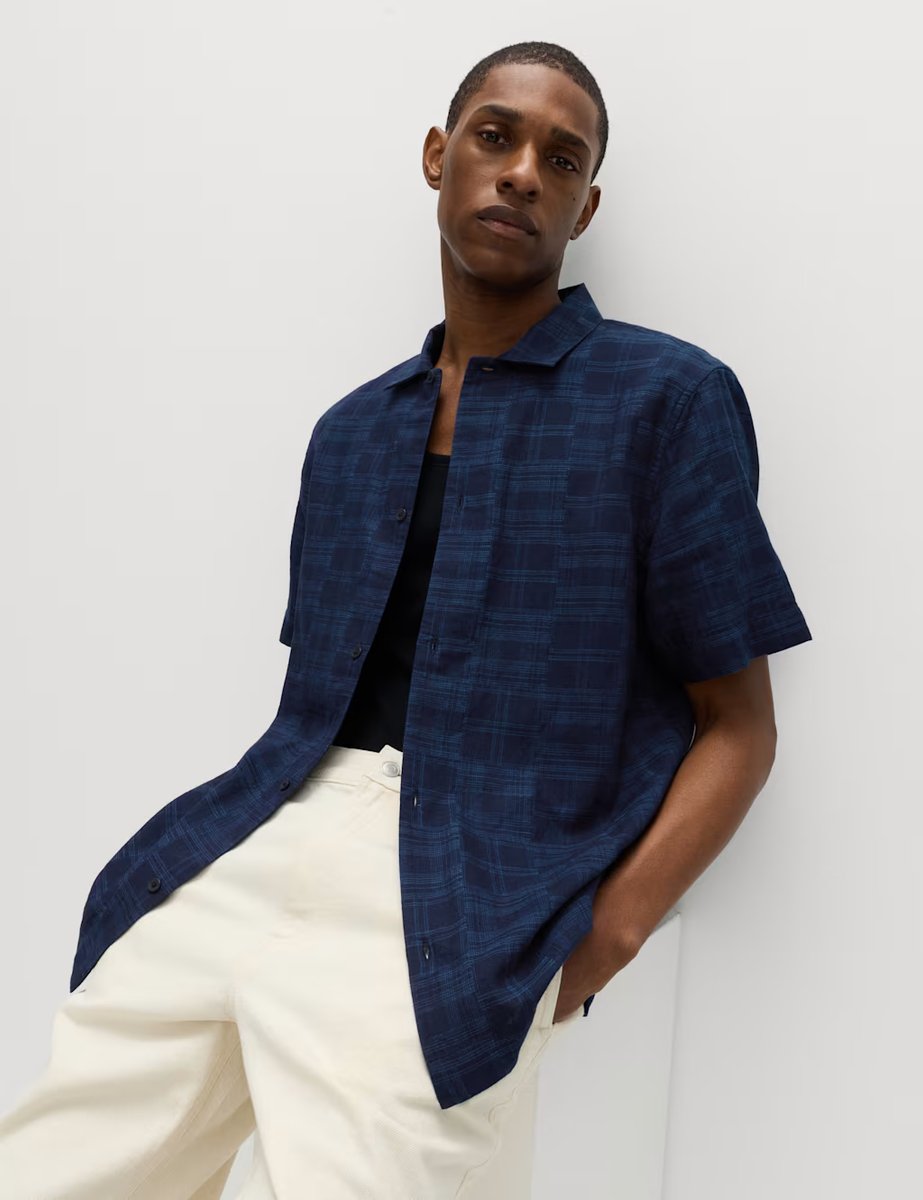 The M&S Regular Fit Easy Iron Shirt in Navy Mix is ideal for work, casual, business.