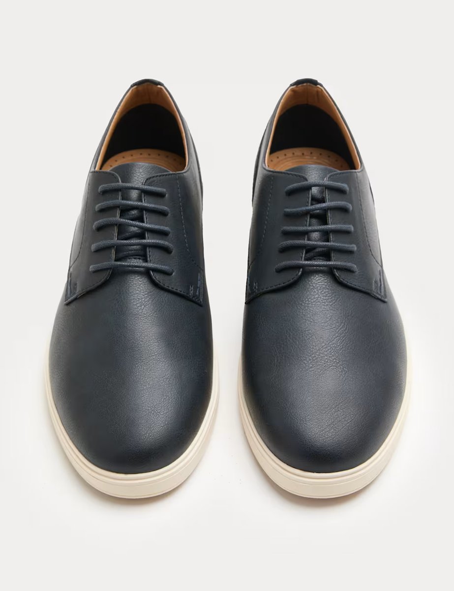 The M&S Derby Shoes with Contrast Sole in Navy is ideal for smart-casual.