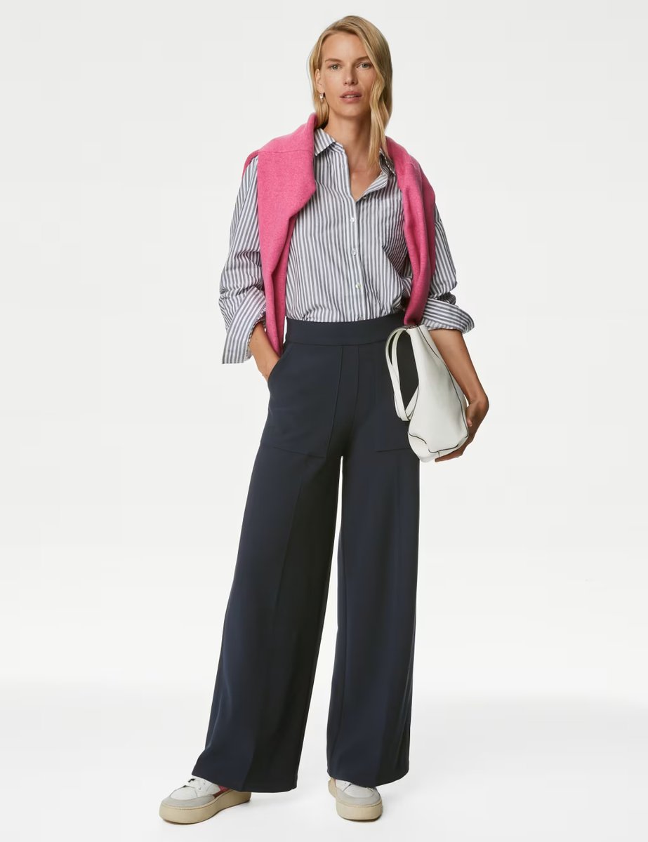 The M&S Wide Leg Trousers in Navy is ideal for work, business, casual.