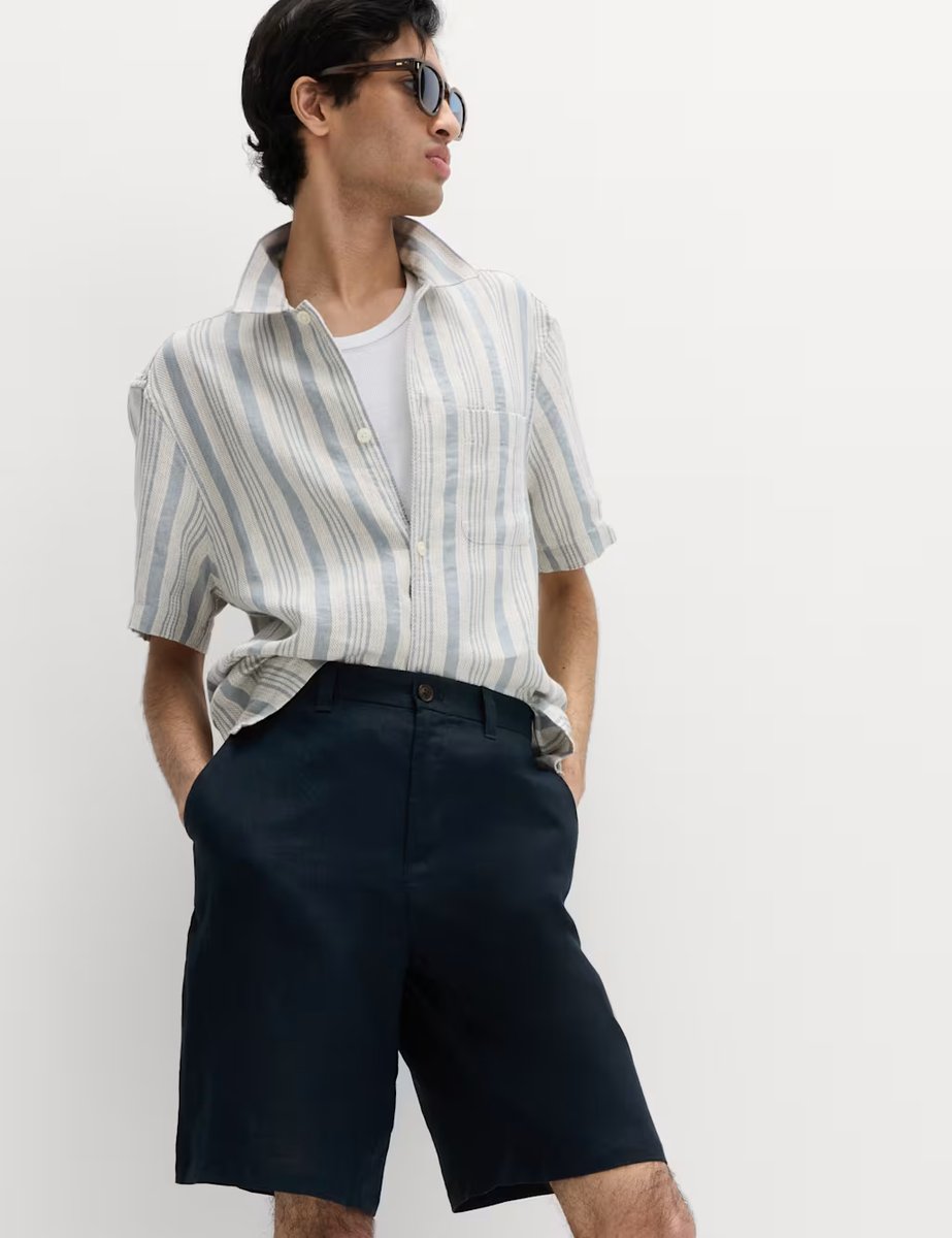 The M&S Loose Fit Pure Linen Chino Shorts in Navy is ideal for casual, beach, weekend.