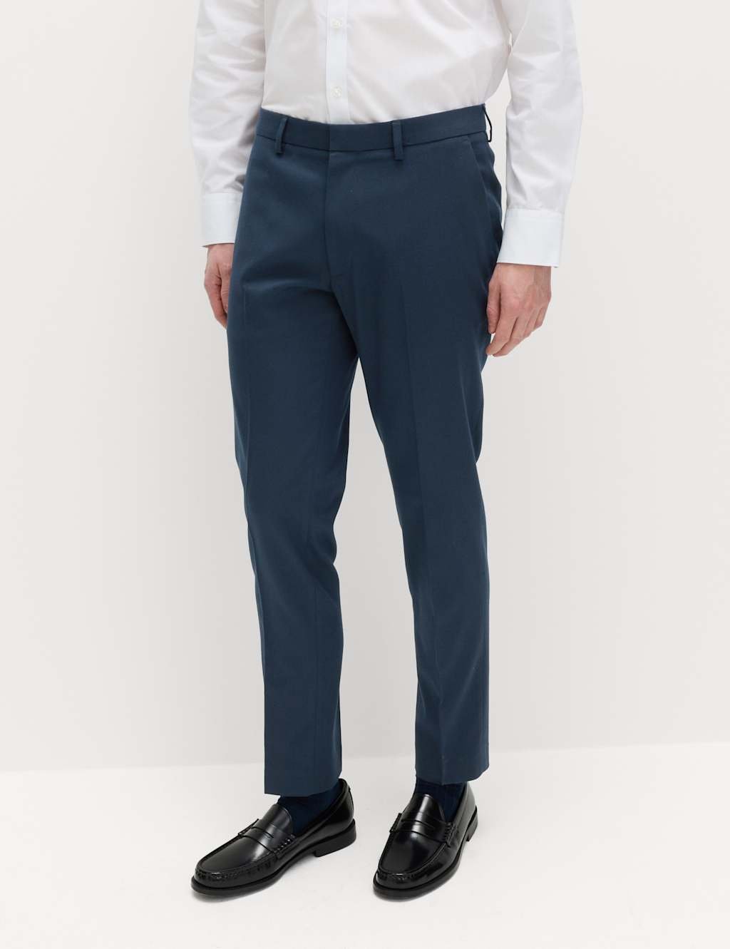 The M&S Skinny Fit Smart Stretch Trousers in Navy is ideal for work, business, formal.