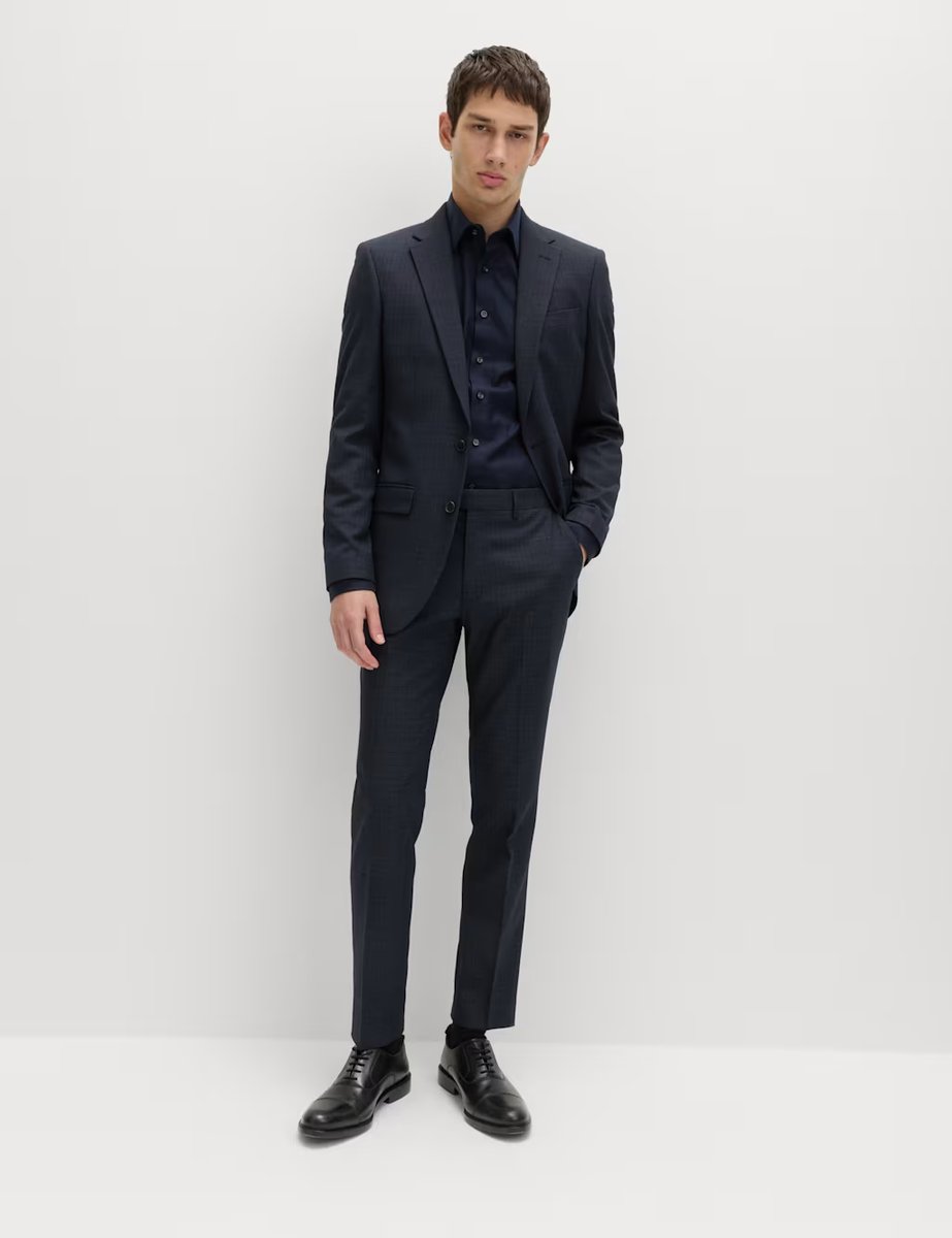 The M&S Navy Skinny Fit Textured Stretch Suit Trousers is ideal for work, business, smart-casual.