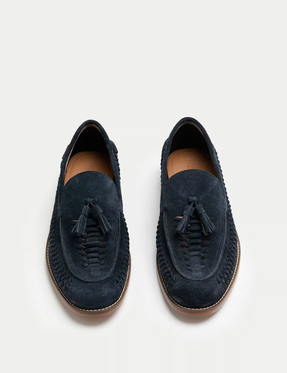 The M&S Navy Suede Slip On Loafers is available in sizes 10, 10½, 11, 12, 6, 7, 8, 8½, 9, 9½.