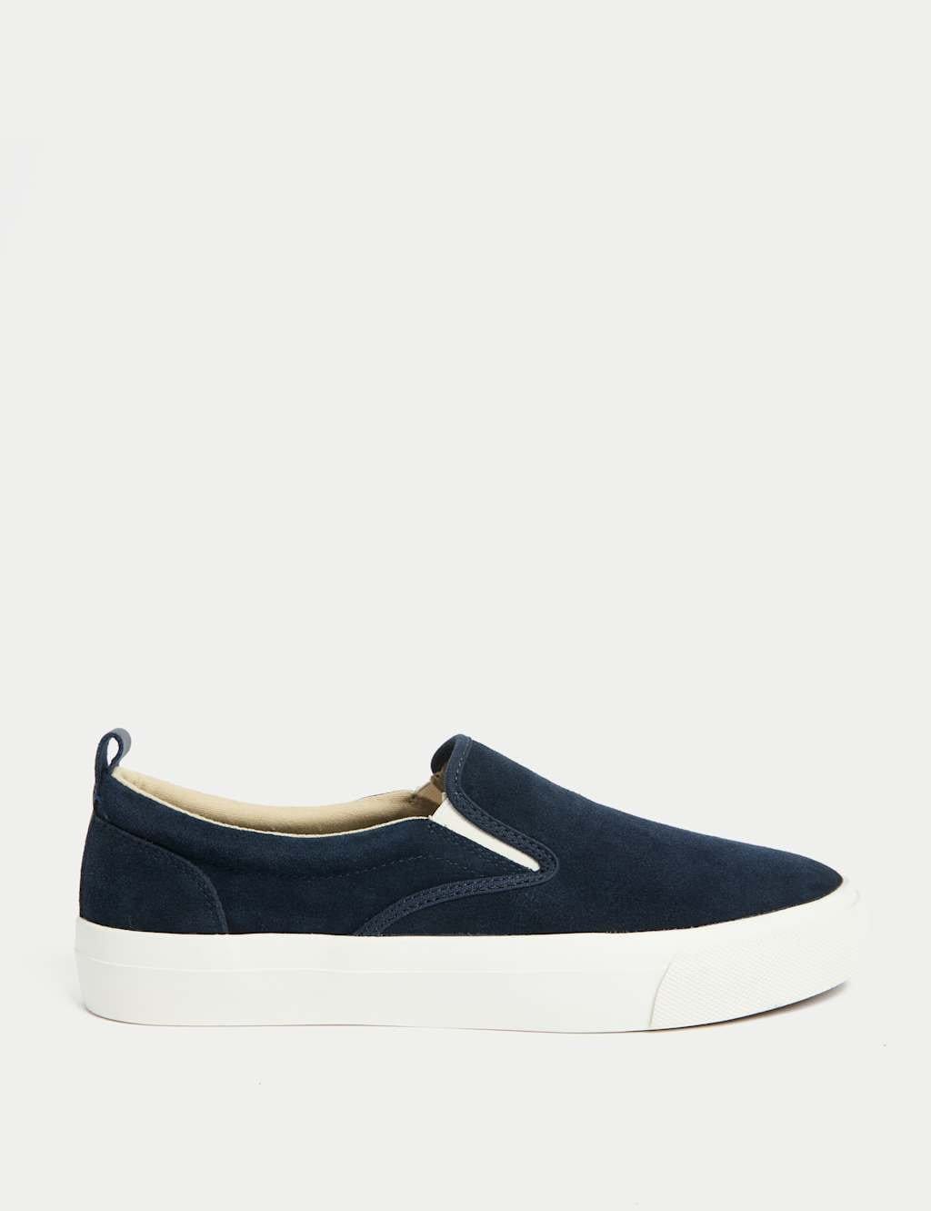 Classic navy suede slip-on pumps with a regular fit and elasticated sides for effortless wear. The stain-resistant finish ensures lasting quality.