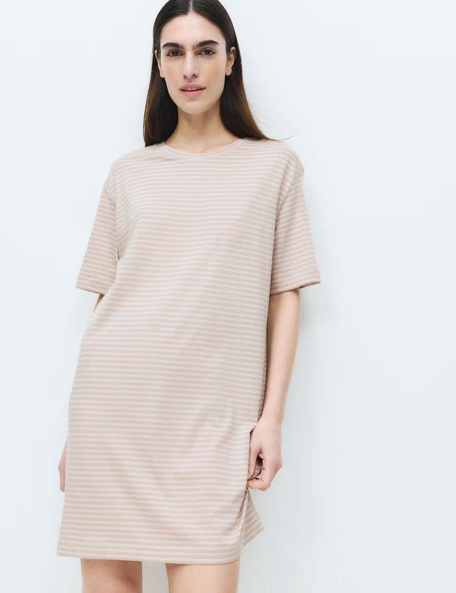 The M&S Neutral Cotton Modal Striped Nightshirt is ideal for casual.