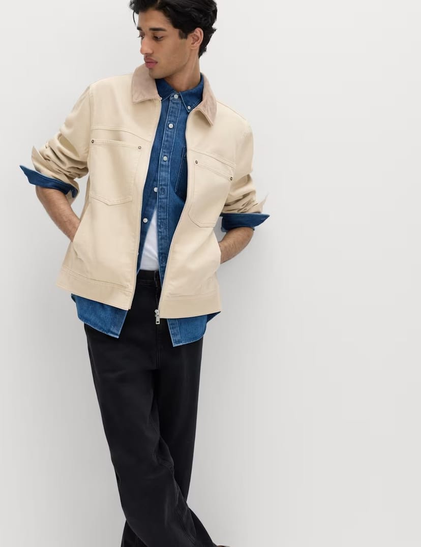Neutral denim trucker jacket from pure cotton. Designed with a roomy regular fit, polished metal zip fastening, and two patch pockets. The perfect choice for a casual chic look.