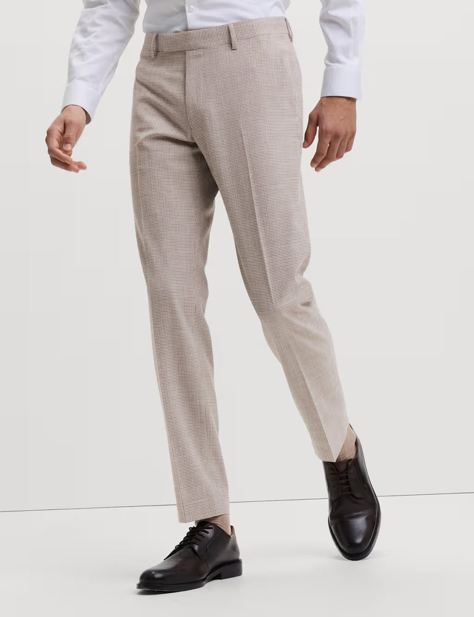 The M&S Tailored Fit Check Suit Trousers in Neutral is ideal for work, business, smart-casual.