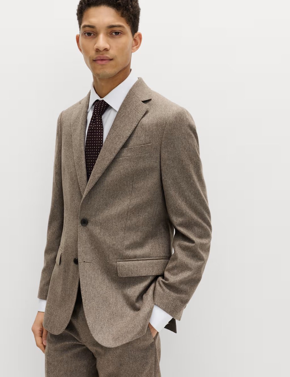 The M&S Tailored Fit Italian Wool Rich Tweed Jacket in Neutral is ideal for business, smart-casual.