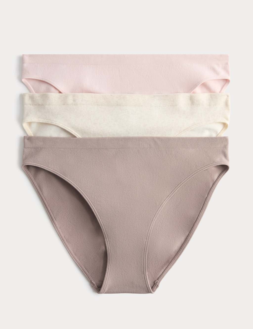 These seamless high leg knickers from M&S are made in a smooth design with added stretch for all-day comfort. They're cut to a flattering high-leg, high-rise style in a comfy regular fit. Pack of three pairs in different colours.