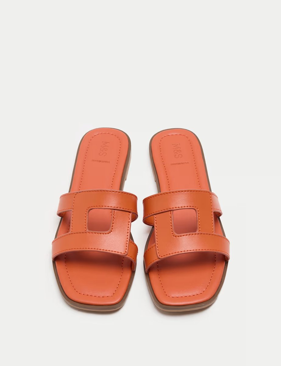 The M&S Orange Leather Flat Mule Sandals is ideal for casual, beach, weekend.